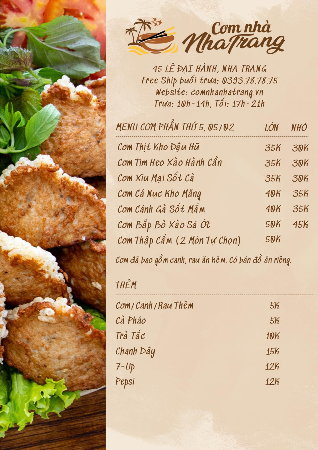Giữa lòng phố biển Nha Trang hối hả, có một nơi để bạn tìm về những hương vị thân quen, nơi mỗi món ăn đều mang hơi ấm của gia đình. Cơm Nhà Nha Trang chính là điểm dừng chân lý tưởng cho những bữa trưa văn phòng nhanh gọn hay những buổi tối quây quần ấm cúng.