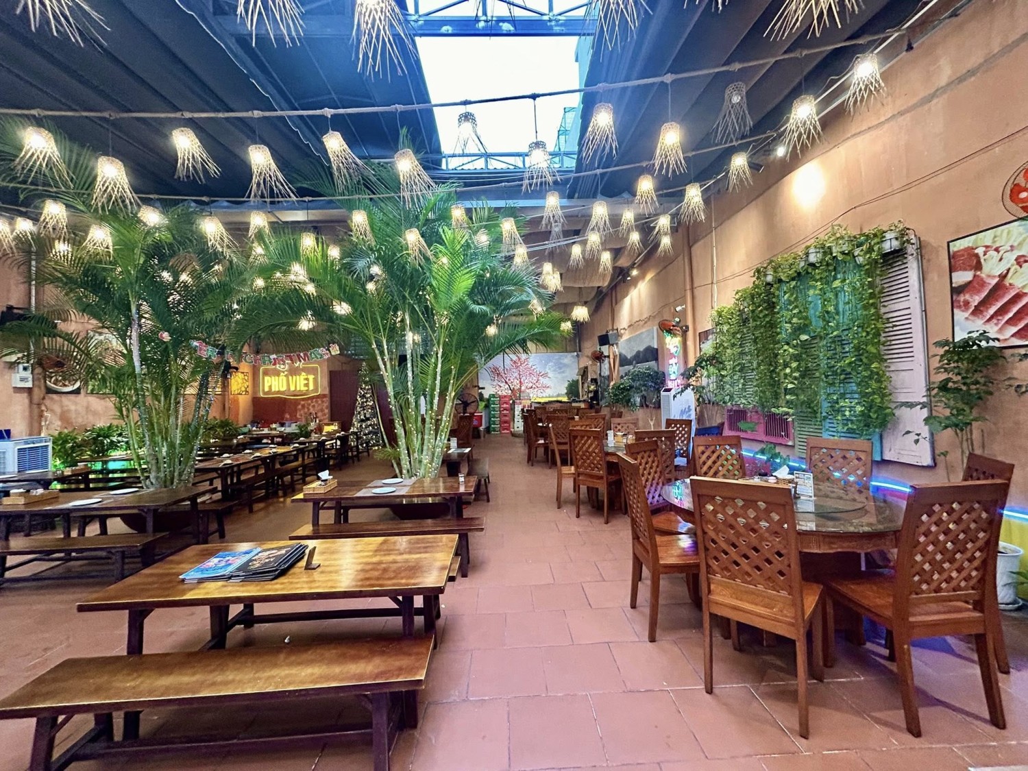 Sự giao thoa giữa hiện đại và nét Việt truyền thống Tọa lạc ngay cung đường sầm uất Trần Quang Khải, Hải Sản Phố Việt gây ấn tượng bởi không gian mở rộng rãi, lung linh dưới những ánh đèn vàng ấm cúng. Nhà hàng khéo léo lồng ghép văn hóa Việt qua những chiếc đèn lồng đỏ và nhành mai rực rỡ, tạo nên một cảm giác vừa sang trọng, vừa thân thuộc.
