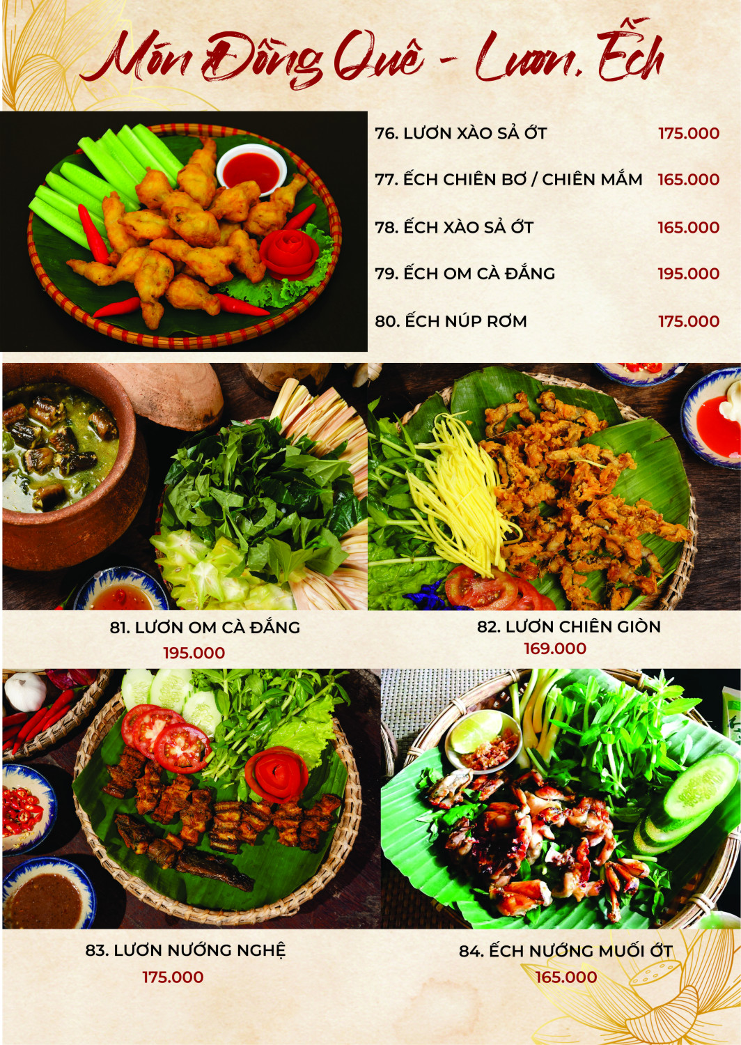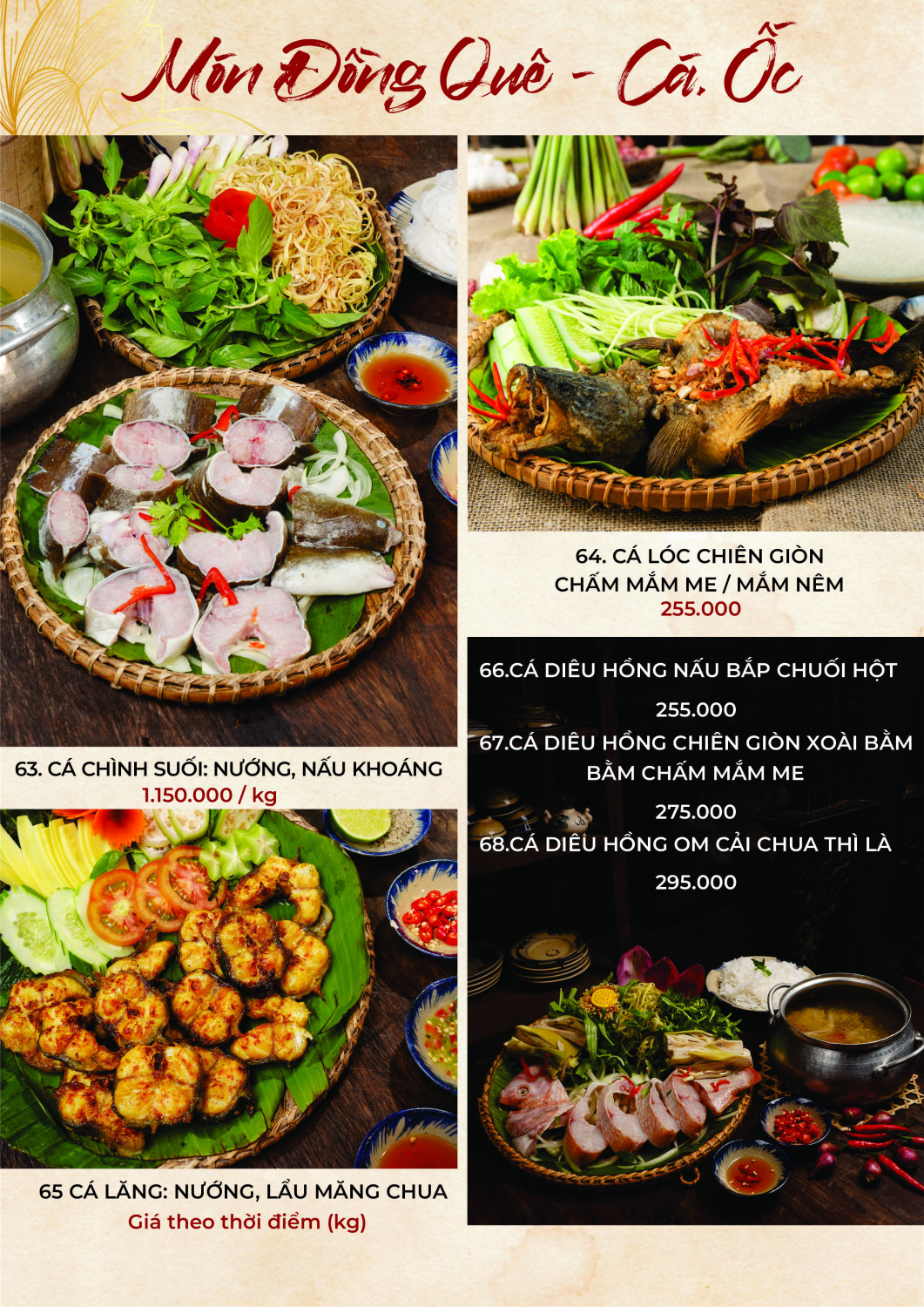 | Mâm Cơm Việt Cổ | Cá Lóc Kho Tộ, Canh Chua Cá, Thịt Luộc Mắm Nêm | Tái hiện mâm cơm gia đình truyền thống, mang lại cảm giác ấm cúng, thân thuộc. |