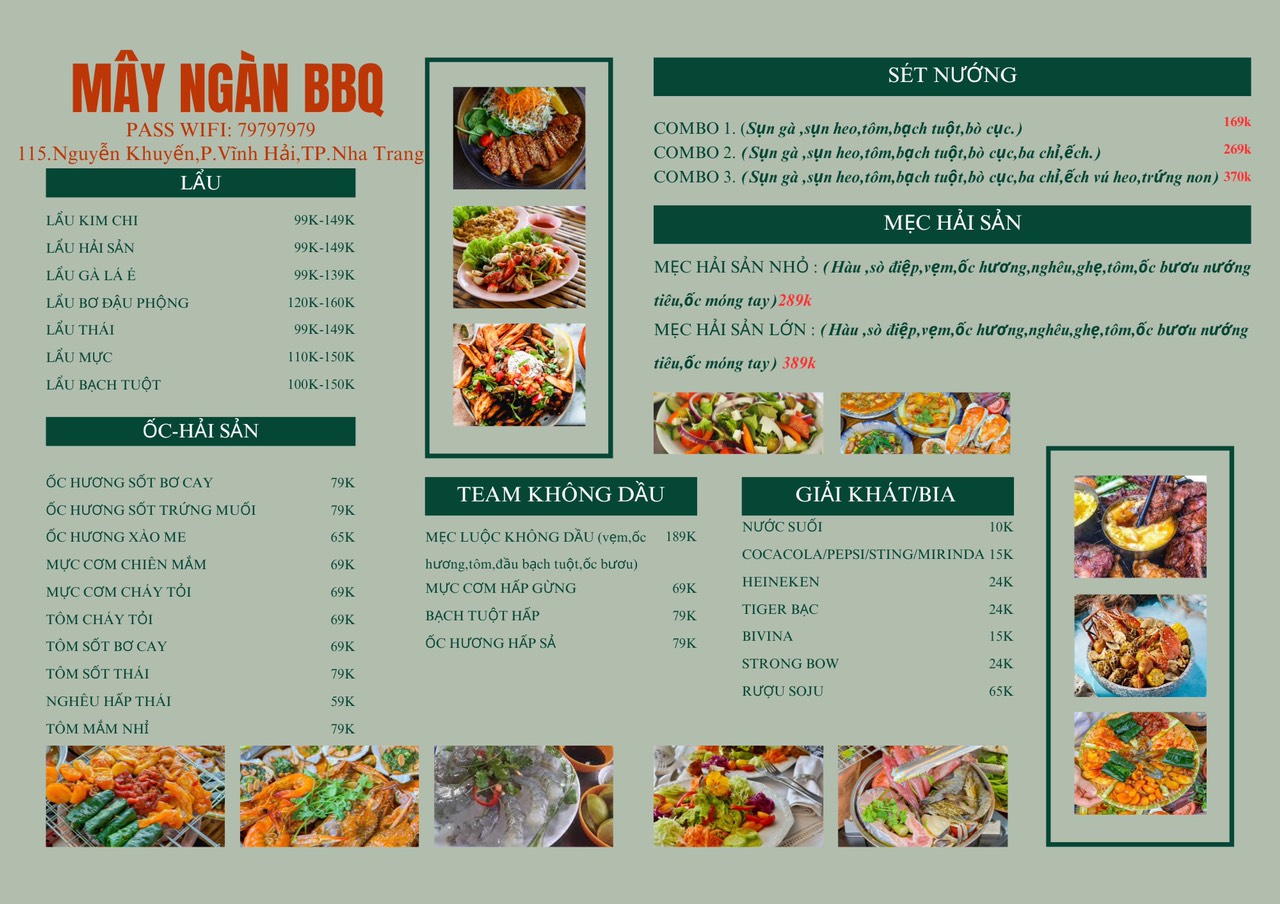 Sự đa dạng chính là điểm cộng lớn nhất tại Mây Ngàn BBQ. Bạn sẽ lạc vào thế giới ẩm thực với:
